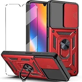 Jshru for Redmi A3 Phone Case with Screen Protector | Camera Protection Cover | Military Grade Shockproof Cover Fit Redmi a3 | Ring Kickstand Case for Xiaomi Redmi A3,Red